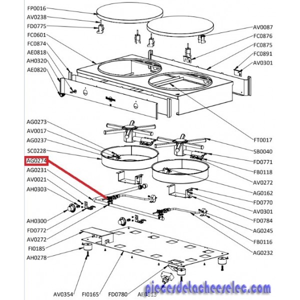 Vue eclatée piece indiquer en Rouge